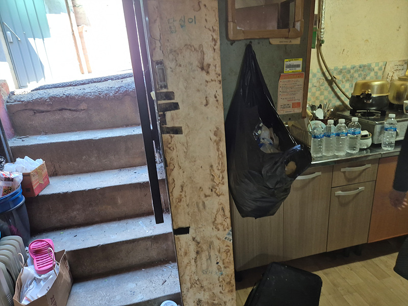 집안 전체가 담배 니코친으로 찌들고, 방바닥은 물이 흥건하게 젖어있어 장판이 썩어 있는 등 악취가 매우 심해 봉사자들이 너무나 고생을 많이 했습니다.