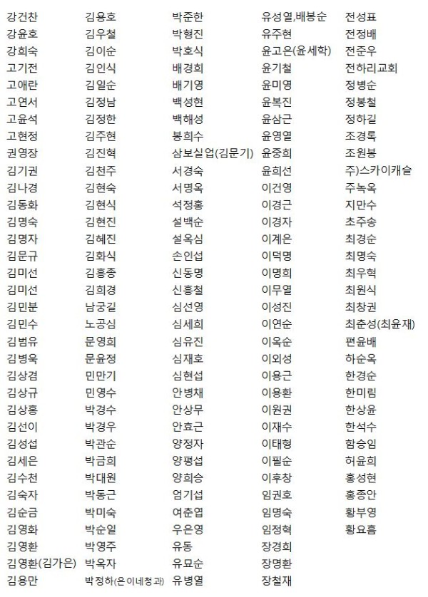 2025년 11월 월정후원자 명단 및 떡국나눔 후원자 명단을 아래와 같이 공지합니다.